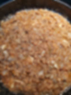 2. While pasta is cooking, heat cast iron pan or a large skillet for a minute or two, then pour vegetable oil in. Once oil shimmers, cook onions in and allow it to be translucent and turn brown, about 10 to 12 minutes.